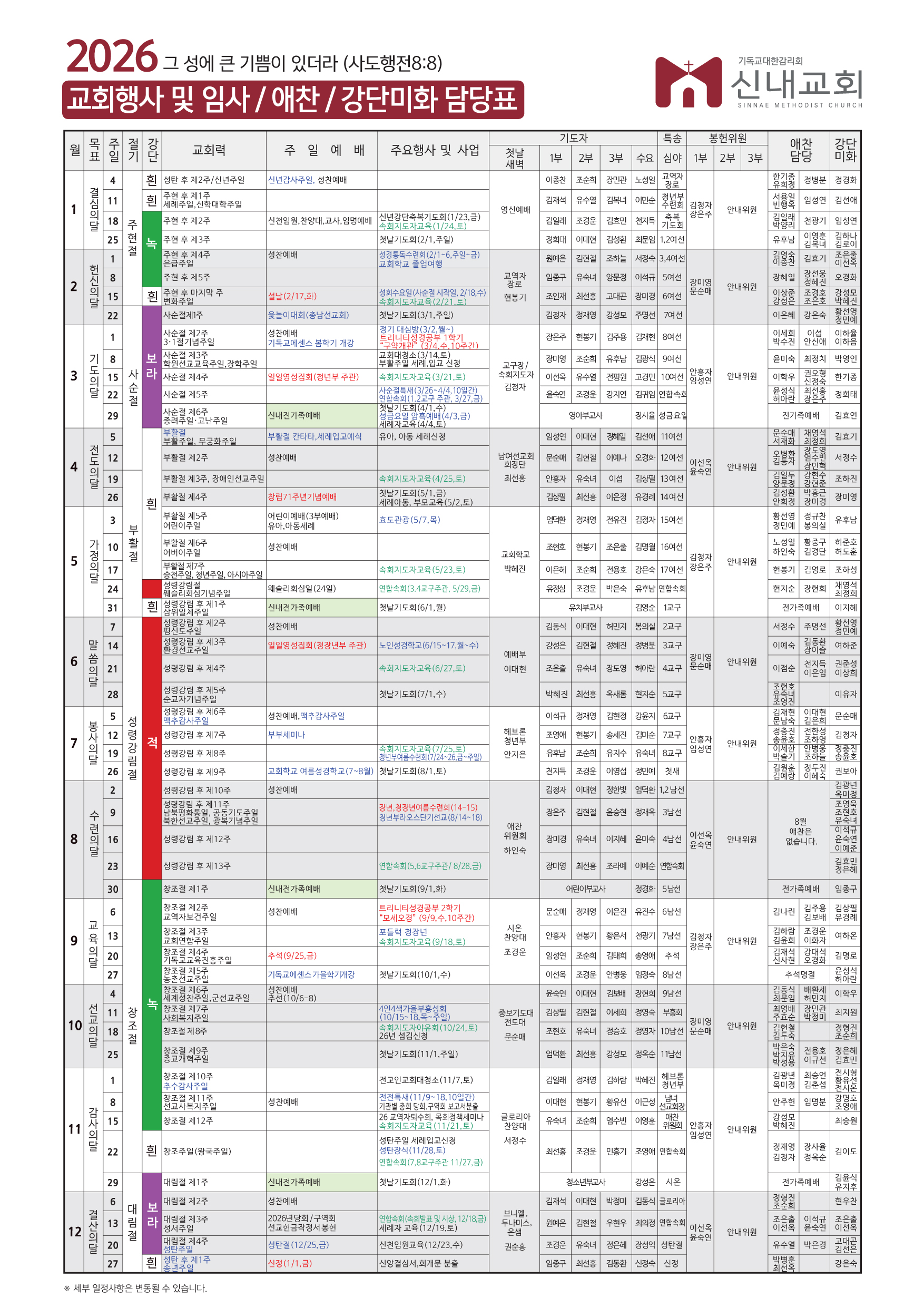 교회 일정표
